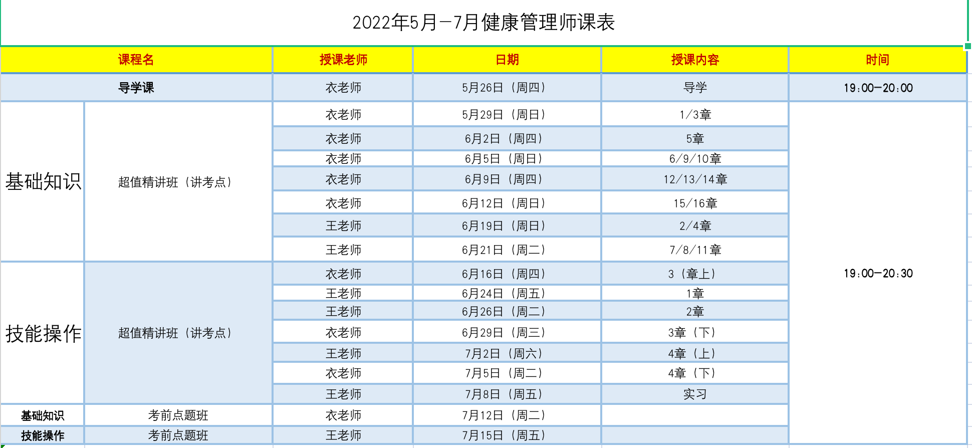 2022年5月-7月健康管理师直播方案和课表已出,望周知!